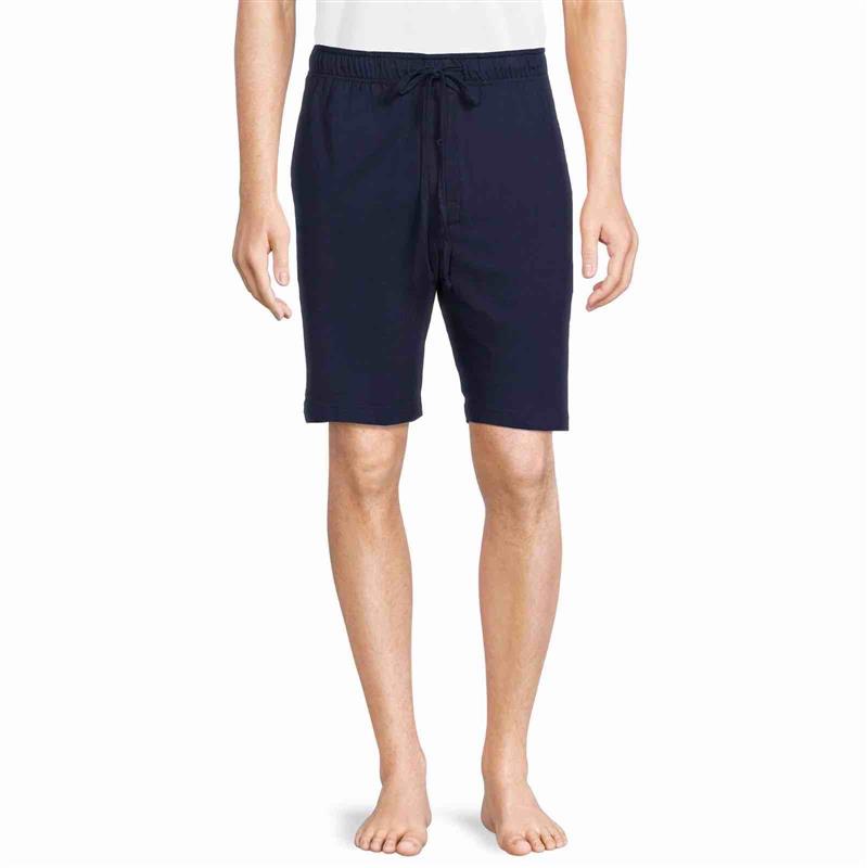 Mens knit sleep shorts. All round elastic waist with functional draw string. Two pockets. Fly with button. View Mens sleep shorts,