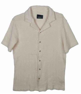 Yarn Dyed Striped & Solids. Embroidery decoration | Short Sleeve | Flat Knit Rib Collar and Sleeve Rib | Side Slit With Twill Tape View Mens striped and solid textured polos
