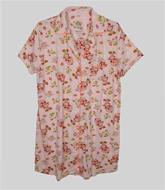 1 Style | All Over Printed | Short Sleeve | Front Pocket, With Collar View Womens buttoned night dress