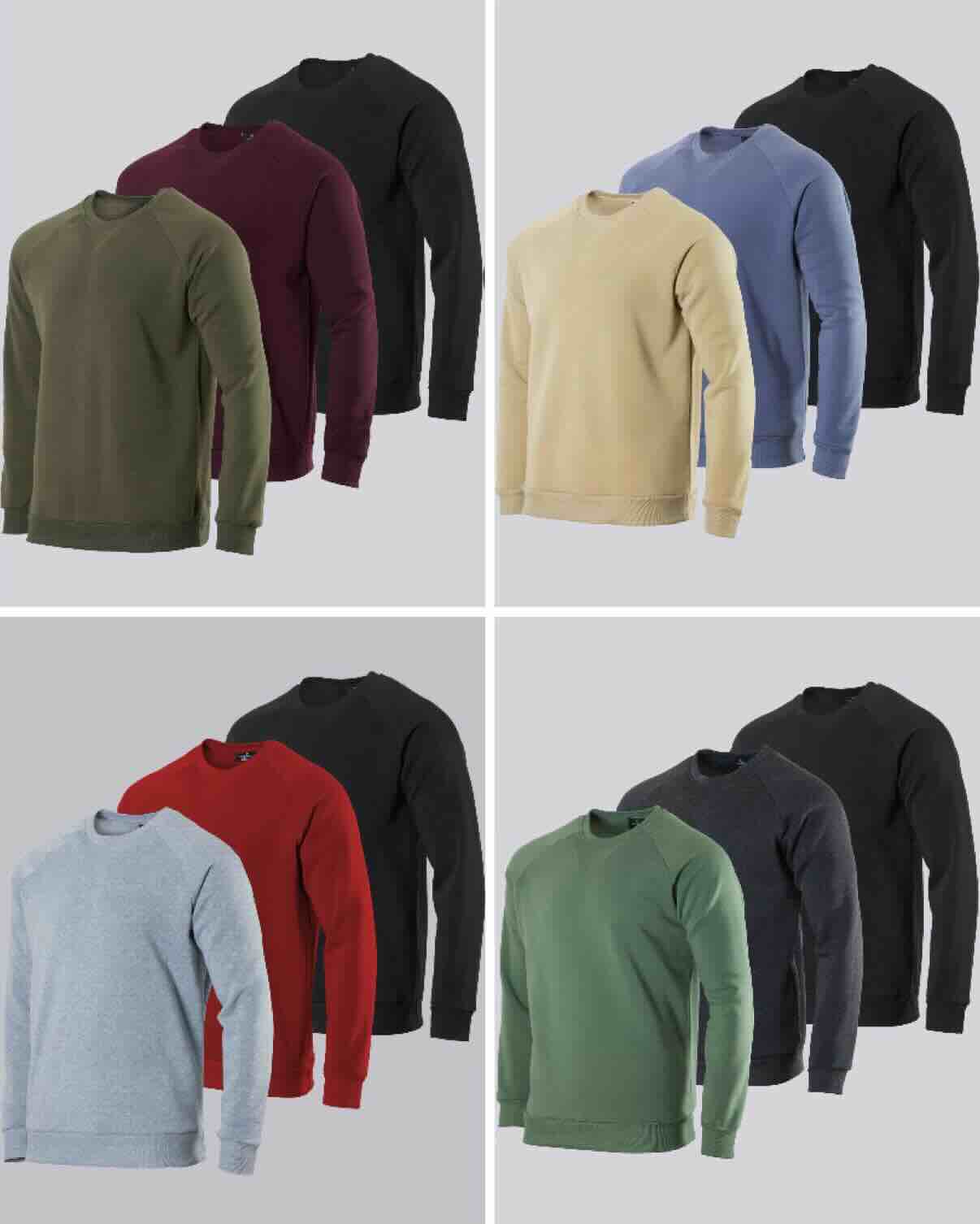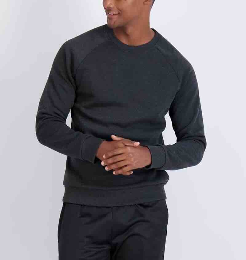 Mens Crew Neck Pullover Sweatshirts. Brushed Fleece. Raglan Long Sleeve. Flat Knit Rib Sleeve Cuff and Bottom Hem.