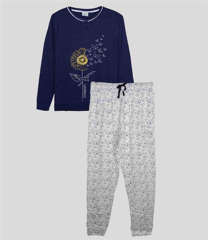 Ladies Printed Pyjama Sets. Long Sleeve Henley Neck Tops. Flat Knit Rib Sleeve Cuff and Bottom Hem. Printed. Elastic Waist Full Pant. Printed. View Ladies printed pyjama sets,